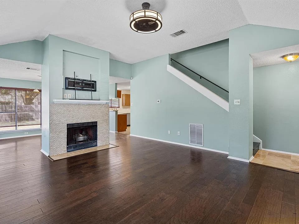 New flooring, trim, doors, light fixtures, and a new electric fireplace throughout