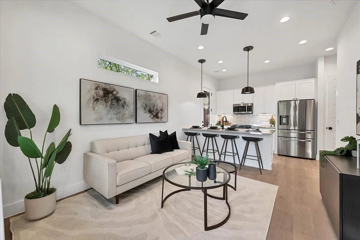 Open layout that flows from the living room to the kitchen, perfect for entertaining