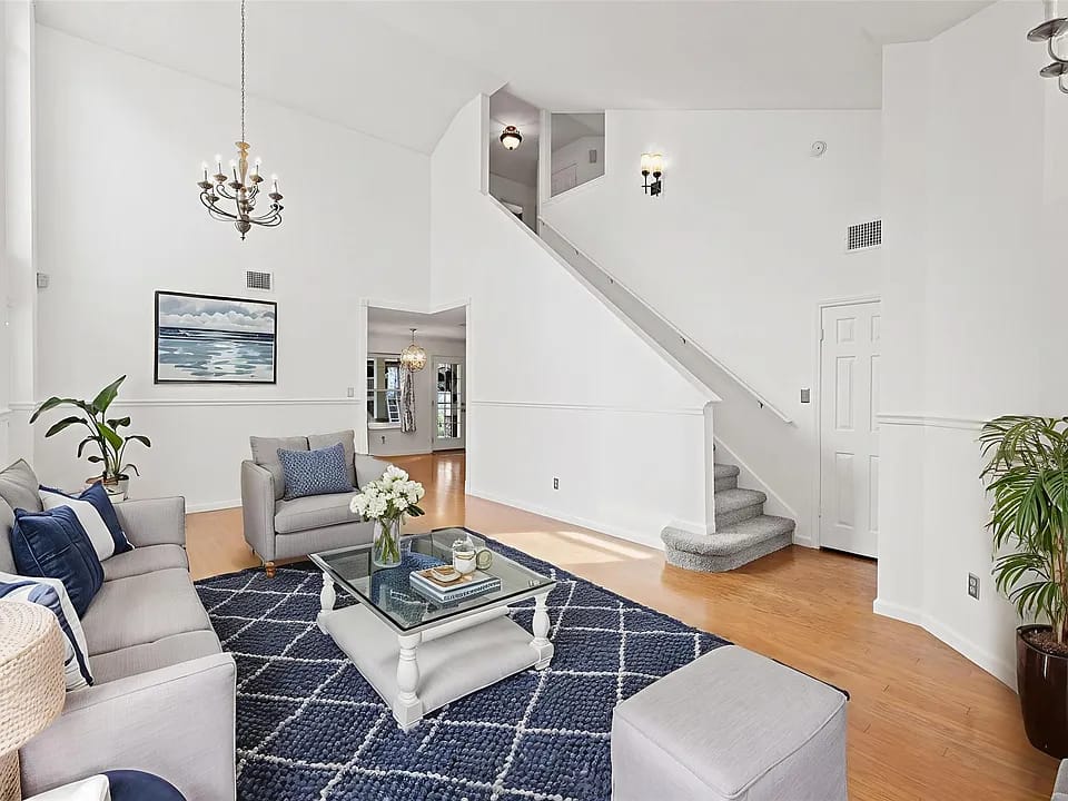 - Vaulted ceilings, a wet bar, smart home technology, and custom built-in features